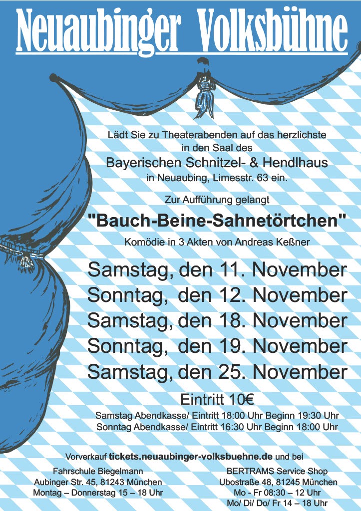 Einen Tag später, am 11. November, feiert die Neuaubinger Volksbühne mit „Bauch-Beine-Sahnetörtchen“ Premiere. Worum geht’s?