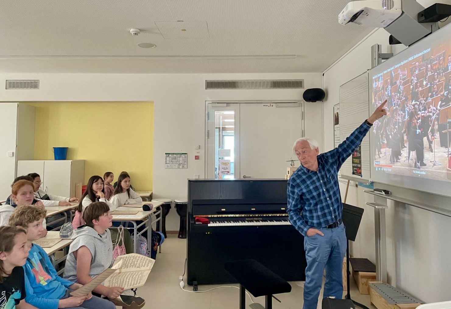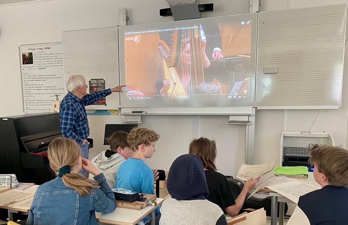 „Die Schüler waren wahnsinnig interessiert und bei der Sache“, so Katharina Müller. „Nicht nur als Heinrich Klug aus seinem Leben erzählte oder Cello spielte. Auch seine Erklärungen zu Smetanas „Moldau“ am praktischen Beispiel folgten alle ausnahmslos begeistert. Seine eigene Begeisterung für die Musik war deutlich zu spüren. Er konnte das Notenmaterial, die Deutungen der Musik und die Bewegungen des Orchesters unglaublich gut rüberbringen.“